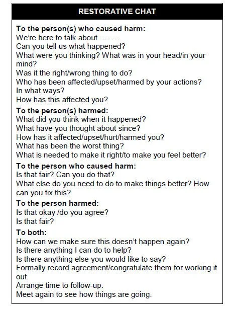 • All those involved have a chance to tell their side of the story in a restorative chat.